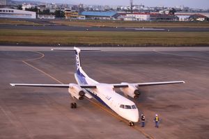 18時40分ANA中部空港行きフレンドシッブ機は 翼が機体の上にあり窓からの展望がよい 1時間15分で到着