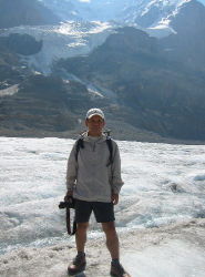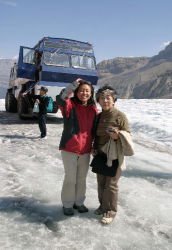| マウントアンドロメダをバックに アスバスカ氷河で |