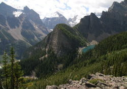 だんだん急な登り道になり2時間でミラー湖 この上にあるレイクアグネスはカールが見事