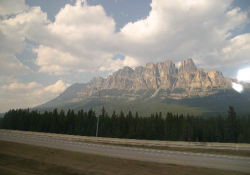 一時間ほど経ったころカナディアンロッキーの山並みが見えてきた お城の様な形の山