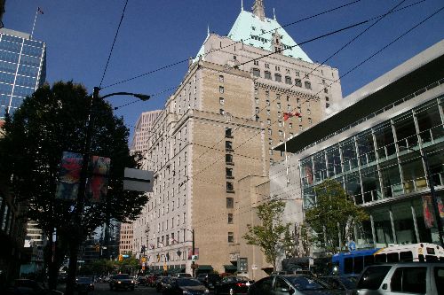 宿泊のフェアモントバンクーバーホテルの下見をする 風格がありお城みたいなホテルだ