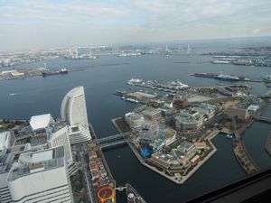 ランドマークタワーの展望室(273m)からの眺望を楽しむ 以前宿泊した 帆の形をしたコンチネンタルホテルが眼下に見えた
