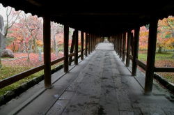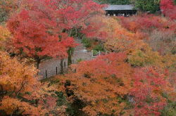 | プラス50の旅 6時36分発の<こだま>は 私達の乗った車両の乗客は三・四人ほど 京都駅で奈良線に乗り換え東福寺駅へ ゆっくり歩いて10分ほどで東福寺に 開門は8時 通天橋への入場は8時30分 一番で入る いつも混雑しているところなのに誰も居ず 水を打った床は新鮮な感じ およそ2000本の紅葉は京の秋を代表する景観 境内の渓谷の紅葉は ちょうど盛りで見事 瞬くうちに紅葉見物の人出いっぱいになる |