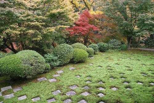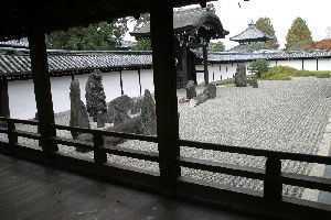 | 日本最大級 国宝 東福寺三門 | 方丈庭園の南庭は枯山水 | 石を市松模様に配した北庭 | 智積院庭園への入り口 |