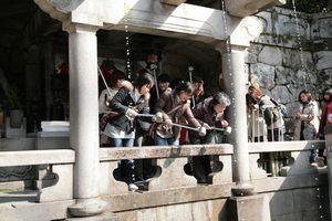 昼食後 また満員のバスに乗り 円山公園から知恩院・南禅寺へ 山門にあがる |