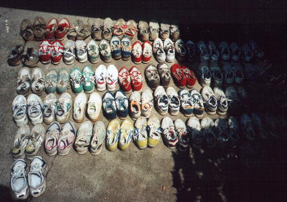 32年間で履きつぶしたシユーズは上の写真。ほとんどを大切に保管してある。