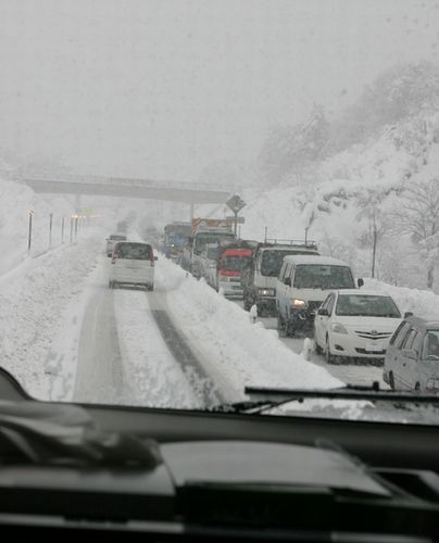 となり 風も強くなり対向車線はスリップ事故もあり大渋滞 上越道を日本海の沿岸辺りへ