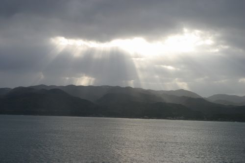 島内最高峰の金北山(1172)を主峰とする大佐渡山脈には うっすらと雪が見える 佐渡は暖流の関係で温暖で 雪はあまり降ら