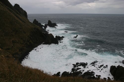 佐渡には灯台が8つあるが 上の右の写真は 島の南端にある沢崎鼻灯台からみた景観