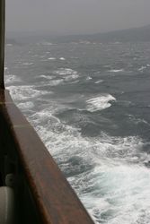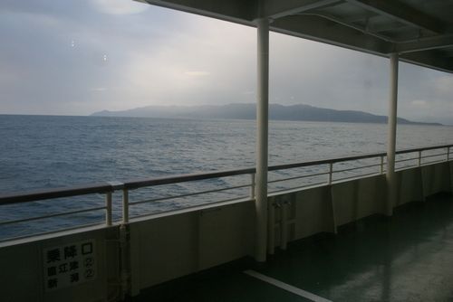 2メートル うねりがあるという 昨日の波高は約6メートルで全船欠航だったようだ この席は船の中央部で ゆれは比較的少ない