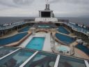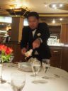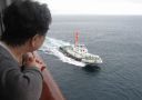 5日目 終日クルーズの日 早朝 根室半島沖を通過 ロシア領に入り 色丹島を通過 択捉島(右手)国後島(左手)の間を通り 二つの島を抜けたあとは 進路を西にとり知床岬沖を通過 正午頃 半島先端から西側沿いに進む 部屋のバルコニーから カムイワッカの滝・クネンポール・フレベの滝などが遥かに見える 知床半島クルージングを終えると 網走港の長い防波堤抜けて タグボートのサポートを受け 午後5時 網走港に接岸 この日は一日 バルコニーからアリューシャンの海を眺めたり シアターでショーを観たり 厨房見学をしたり ショッピングアベニュー を散策したり 音楽を聴いたりしてゆったり過ごした 今晩のドレスコードは スマートカジュアル 船友になった8人で |