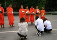 順番に並んだその托鉢僧に地元の人と一緒に朝食の差し入れをした