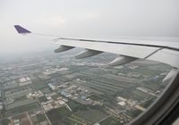 スワンナ・プーム空港まであと70キロに近づいた時 機内放送で 空港近辺が強い雨で着陸許可が下りないので