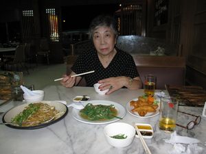 たっぷり4品とシーハビール一本で二人で約1000円 トクトク代は往復約330円 しっかりつかまっていないと