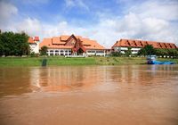 小型の車で案内人と一緒にピン川のほとりのクオリティーインへ 1750室からはレンガ色のピン川がよく見える