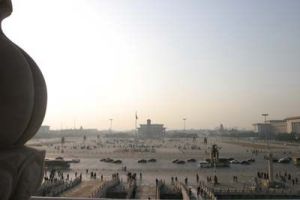 | 天安門の楼上よりの眺め 中央が 毛沢東記念堂 右が人民大会堂 |