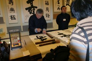 | 故宮で揮毫する愛親覚羅南伽氏 |