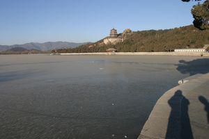 総面積290haのうち約7割が湖が占める 昆明湖のほとんど凍っている
