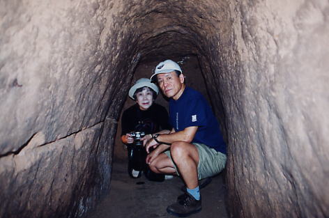 1月3日 前夜からの雪で 朝十数センチの積雪 欠航決定が相次ぐ中 キャセイ航空のカウンターでは 今日中に出発はする予定だが何時になるのか分からないとのこと 香港からのベトナム航空ホーチミン行きの乗り継ぎ時間が2時間なので とても間に合いそうにない とりあえず香港まで行こうかとも思ったが 翌日の便を予約して帰る 8日から仕事があるので 帰る日を先に延ばせない 旅行期間が一日短くなってしまって残念 翌4日 朝 路面凍結なし 順調に空港へ B777-300機で定刻出発 シートが背中に良く合って気持が良い 41AC席はちょうど翼の上 1時間後昼食 ここでもチキンとフィッシュだけでビーフはなし 宮崎上空から南シナ海へ 香港まで4時間30分 空港の 5階へ到着 トランスファーポイントを探し 持ち物検査を受け 6階の35番ゲートからベトナム航空A310機でホーチミンまで2時間30分 (右=機窓からメコン川の蛇行が見える) 2階建ての小さな空港の外に出ると ボァ-ンとした南国特有の暖かさ 韓国製のタクシーで30分 サイゴン河畔のルネッサンス・リバーサイドホテルへ (五つ星ホテル・4泊で1人32000円・朝食付き) ロビーでピアノ三重奏の演奏をしている 食事はすぐ近くの中国風海鮮料理店へ 店員が多く 常に気配りしてくれる 旨い 333ビールは1ドル 食事のあと ホーチミン一番の繁華街ドンコイ通りを歩いてみる あい変らずもの凄いバイク群 大通りでも信号はなく とてもじゃーないが横断できない 横断歩道はあっても全く止まってくれない このホテルは河畔一の高層ホテルで99年に新築された新しいホテル 部屋・バスルームは大きく 給排水・タオル・アメニティーグッズなども良く また従業員も感じが良く快適に過ごせた 5日 5時半で真っ暗 6時にやっと明るくなってきたのでランニングに出発!早朝からバイクの洪水 3・4人乗りは当たり前(下=ホテル前大通りのバイ ク群)子どもを真ん中に立たせて5人乗りもいる ヘルメットなし バックミラーなし 台湾・中国製がほとんどらしいがスズキ ヤマハ ホンダなと゜のコピーのようだ 日本製は性能は良いが高価なので買えないとのこと 早朝から市民がバイクの通れない自動車専用の道路でバトミントンや体操をしている このホテルの朝食は品数も多く良いが 次回の旅では泊まったホテルだけでなく色々なホテルの朝食のはしごをしたら面白いと思った ベトナム戦跡のクチトンネルへは一時間半 郊外へ出るとテレビアンテナは立っているが 貧しくなるようだ 土間に裸足の生活だ 途中 名物の ライスペーパーを作っている家庭に寄る 一日で700枚つくり3ドルの収入 一家で一日一ドルの生活だからこれでいいのだそうだ ![]() トンネルへ入る前に ベトナム戦の映画を見る トンネルの入口はたくさんありグループごとに現地のガイドが付く 私たちは二人なので効率よく周った(右=クチトンネルの中) 中は狭く何度も天井で頭を打った 人がすり違えない狭さだが 病院や会議室は広い 当時のアメリカ 軍の戦車や落し穴など残酷な仕掛けも残されている 市内からここまで約の60キロに信号は2つか3つだけ 市内に歩道橋など歩行者用の施設は全くない 前政権時代の大統領官邸を見て 戦跡記念館へ アメリカ軍が解放軍にした残酷行為の写真が実際使用されたギロチンなど共にたくさん展示されている 戦争は人間を狂気にする (左=戦跡記念館内を案内するアオザイ姿の女性) 夜はホテルのすぐ前から出るクルージングレストランへ 道のすぐ向こう側が乗船場だが 物凄いバイクの群れで 夜は危険で渡れそうもないのでタクシーに乗って道を渡る 7時頃から食事で 8時半からクルージング サイゴン川を上り下りするのだが 夜景が綺麗なのは中心街のほんの一キロほどで あとは暗闇の中をクルージングするだけ バンド演奏などもない (左=サイゴン河畔のホーチミンシティー の中心)対岸は真っ暗でなにもなく河畔の看板だけ それでも満席 ジャケットを着て行ったがやっぱりこの方が良い カメラは旅行用として今回の旅に初めて持ってきた軽いミノルタの一眼レフ α7と今までのペンタックスの一眼レフ MZ3 それにデジカメのオリンパスME10 このオリンパスは旅行用としてはちょっと重いかなと思うが安定感はある 6日朝はそのオリンパスを持って走る 重くて何回も持つ手を変えた ベンタイン市場の前でバイク群を流し撮りしたがどうも旨く撮れてないようだ 朝食後メコン川クルージングに60キロ先のミトまで行く 黄土色の水 一見濁っているようだが 水草も浮いており不潔感はない 中州で食べた新鮮な珍しいフルーツは美味しかった そこから親子で船を操っている小船に乗り換え メコン川の支流のクリーク探勝 二人が黙々と漕いでくれる一所懸命さが伝わってくるので 降りる時チップを渡そうと思っていたが忘れてしまった 昼食は もち米の粉と砂糖などをサッカーボールくらいの大きさに揚げたものを切って それにチキンなどを包んで食べるものと エレファントフィッシュと野菜をライスペーパーで包んで独特のタ