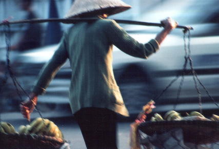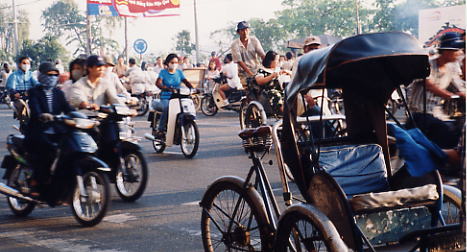 9時10分発の中華航空機は70%の搭乗率。中正蒋介石空港まで3時間10分。台湾の高速道路はでこぼこが多い,一般道にはスクーターが多い。故宮博物館を2時間で見る,ガイドは博識だった。そんなに規模は大きくない。つぎに中正記念館に行ったがが27万坪の敷地で市内中央にある。ちょうど夕方で風が心地よかった。日本の5月の気候か。7時10分発で10時40分ホーチミンシテイ着。時差1時間。 市内はバイクが凄く多い。ヘルメット無し,バックミラー無し(出荷時は付いているのだが盗難を恐れ,家にしまってあるのだと言う)50cc以下は免許証は不用で大人二人乗りはOKらしい。3人,4人乗って飛ばしている。信号はあまり守られずどんどん進んでくる。マスクをして運転している人が多い。アオザイ姿のベトナム娘が颯爽と風を切り乗っている。アオザイは白色が多くこちらは洗濯の心配までしてしまう。ベトナムの物売り(左画像) 統一記念館,ペンタイン市場を見,戦争記念館で虎の檻やギロチンなど見た。容姿に自信のある娘はアオザイを大胆に着ている。 夕食は,マキシムでシヨウを見ながら食事。このあたりはフランスの名残がある雰囲気。 朝5時50分にランパンにTシャツでランに出る。早朝から凄いバイク群。歩道はあるが狭くしかも色々な物が置いてあるので無いと一緒。完全な車優先社会で,すぐにクラクションを鳴らす。青信号でも歩行者はなかなか渡れない。交通整理の制服の警察官にチョコレートをあげたらすぐに食べ,ニッコリ笑って渡してくれた。ガソリンは,1L40円くらいで安くないのにこのバイク群はどこへ行くのだろう。 9時らミトへ向かう。国1を3時間の間に信号はほとんど無い。名古屋の市バスが走っている。 郊外に行くとバイクは減るがまづしい家が目立つ(左画像) アスファルトのかけらを拾っている女性いる。これを集めて売るのだという。工事でバスが止まると物売りが盛んに売りこんでくる。ミトの街はメコンデルタの港町。黄土色をしたメコン川にごみは無い。ジャンクが多い。気候は良く快適。同じ道を帰る。ホーチミンシテイーに近づくと活気ある雑踏が始まる。思わず撮ってしまう。 6時にカメラを持ってホテルを出る。ベトナム娘も美人はピクチユアーOKでそうでない娘はノーだ。このオムニサイゴンホテルは大理石を多用した品の良いホテル。もう一度使っても好いと思う。この時間小学校が始まっておりチョコレートをやったら大勢集まってきた( 右画像)先生おーいと呼んでいた。9時からクチトンネルへ行く。途中の道沿いにある家はヤしの葉で屋根作ってあり,土間で生活している。しかしTVアンテナはたくさん立っている。1時間30分でクチ到着。はじめに説明の映画を見てからトンネルに入る。匍匐で通る。所々に換気穴がある。狭いところがありからだの大きいアメリカ兵を通さない工夫だそうだ。落とし穴などあり戦争の残酷と悲惨を感じた。 翌朝のランは,昨日の朝見た親子連れのホームレスにチョコレートを渡そうと行ったが居なかった。どうしたかちょっと心配だ。 9時発台北行の後部はほとんど空席。適当に席を替わって寛いでいた。空港に定刻8時10分到着したが,税関で色々聞かれ調べられた。こんなこと久しぶり。 ベトナムは良かったがもっとゆっくり街を歩き良い写真を撮りたかった。それと屋台がたくさんありそこで美味しいものを食べたかった。 |
