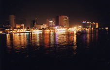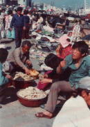 済州島(韓国) | 初の海外旅行であった。当時磯釣りに凝っていて毎週くらい紀 伊半島へ行っていた。所属していた全日本磯釣り連盟か゛韓国の南島磯釣りクラブと対抗戦をチエジユ島でやることになって韓国へ行った。初めて機上から韓国の町が見えたときは,初めての外国ということで感激であった。ソギポ{西帰浦)とか虎島の磯で石鯛をねらったが釣れなかった。釣れなくても素晴らしい自然に接し満足な大会だった。 餌のサザエもすごく安く,たっぷり使え大満足。余ったさざえととこぶしは磯の上で海水で洗って食べたが,これがまた美味しかった。たしかに当時の韓国はまずしく今の隆盛が信じられないほどであったが,皆一生懸命に生活していることが感じられ好感を持ったことをおぼえている。 (左右の画像は釜山港付近) |