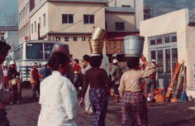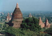 ヤンゴンへはバンコク経由で行った。2時間30分で石垣島上空との放送があった。二週間後ここに来ることになっている。 ヤンゴン国際空港も暗いし,市内も暗い。空港の掲示は手持ちのプラカードだ パゴダの街パガンは短パンでは駄目とのこと。空港に着いてびっくりしたのが, 女性が頬にタナカという白い絵の具を塗っていることだ〔左画像) ことだ。馬車がいる。ぼろぼろの自転車。ぼろぼろの車。バイクはほとんどいない。観光客はあまり目につかない。小型トラックの荷台に3列,板の座席を作り,そこに2.30人が乗りぶらさがっている。この凸凹道ででよく振り落とされないものだ。パゴダ群(右画像)は見ごたえ十分。靴を脱いで入る。いちいち脱ぐのが面倒と思ったので日本から下駄を持って行き重宝した。向こうの人にそれどこに売っていた?と聞かれた。 街中バコダが林立している。すぐ横をイラワジ川が流れ,落日の景 色は見事であった。ビルマの竪琴で有名な寝釈迦佛のあるパゴーへは飛行機で2時間。はだしで産物店のある参道を抜け,視線を上げると巨大な仏像が目に入る。 最終日は7時45分コールだったので初めて走れ,わくわくした。30℃はあると思うがほとんど汗をかかない。スーチーさん邸への道は通行止めで勝手に行けないようになっていた。 食事はけっこう美味かったがビールはミヤンマービールで通した。 日本でも飲もうと思って探したが見つかっていない。 |