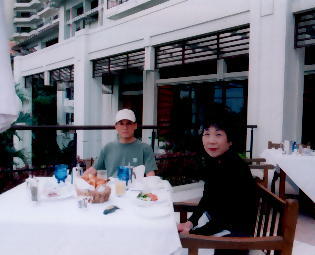 朝食はメインダイニングのファヌアン で食べた(右画像)。オープンテラスでで快適。