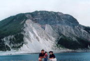 11時40分神津島着。港で二男の家族の出迎えをうけて島内巡り。信号は1つある。本当は要らないのだが,子どもが都会へ行って信号を知らないと困るので設置したのだそうだ。夜は息子の友達の家族15人くらいとバーベキューパーティー。さざえ,とこぶし,イセエビ,たかべなど魚介類を満喫する。朝は二男が毎日5時に車で宿まで迎えに来てくれた。学生の時は,朝なかなか起きなかったのにその変わりように びっくり。天上山(写真右)へ日の出を見に行く,四方さえぎるものは何も無い。海は全くきれい海底の砂がキラキラ輝いて見える。夜はすし。翌朝は三浦展望台からの写真撮り。ここの温泉は塩辛い。