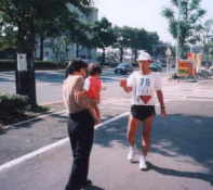 市内に入って家に電話する。妻が冷えた果物を自転車で持ってきてくれる,これが美味い。